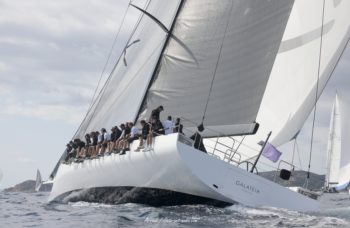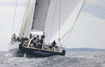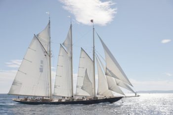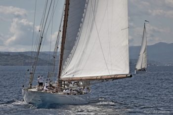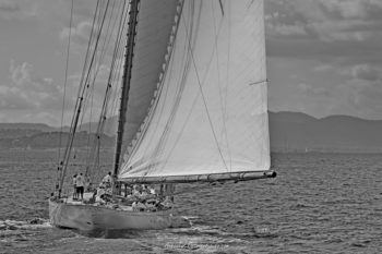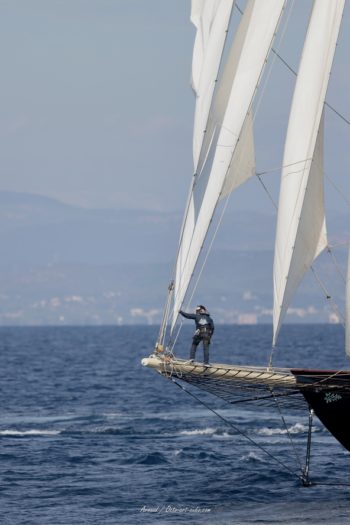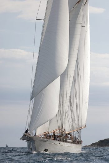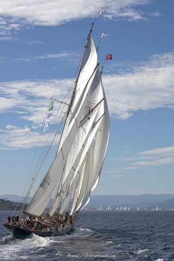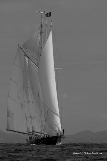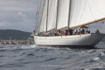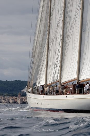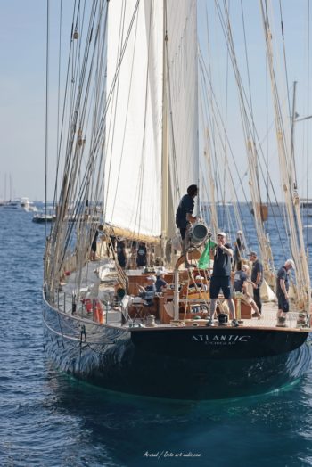 Quand le futur rencontre le passé sur les flots tropéziens : le Magic Carpet E, solaire, aérien et audacieux, se dresse comme une promesse d’innovation, tandis que l’Atlantic, plus vieux voilier du plateau, murmure l’histoire et les exploits d’antan.